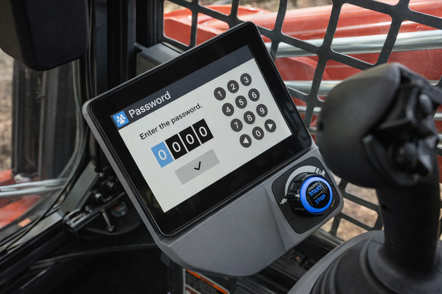 - Keyless start — Lets authorized users start the machine through a passcode on the LCD touchscreen rather than relying on a physical key, helping reduce the potential security risks that come with misplaced or copied physical keys.